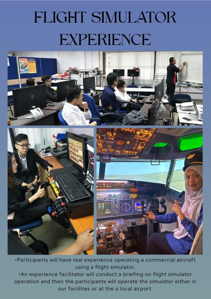 Bayangkan mengawal sebuah pesawat nyata dalam simulator profesional. Para peserta akan diberi peluang menjalankan latihan simulasi penerbangan Boeing 737-800, lengkap dengan bimbingan daripada jurulatih pakar untuk memahami asas penerbangan.