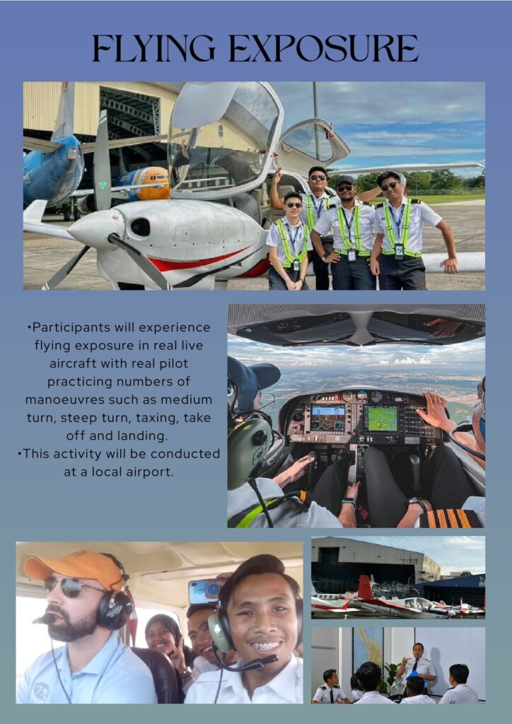 Program ini termasuk pengalaman terbang sebagai co-pilot dengan juruterbang sebenar, melihat dari dekat bagaimana penerbangan dilakukan dalam dunia nyata termasuk manuver asas seperti taxiing, take-off, landing, dan turning.