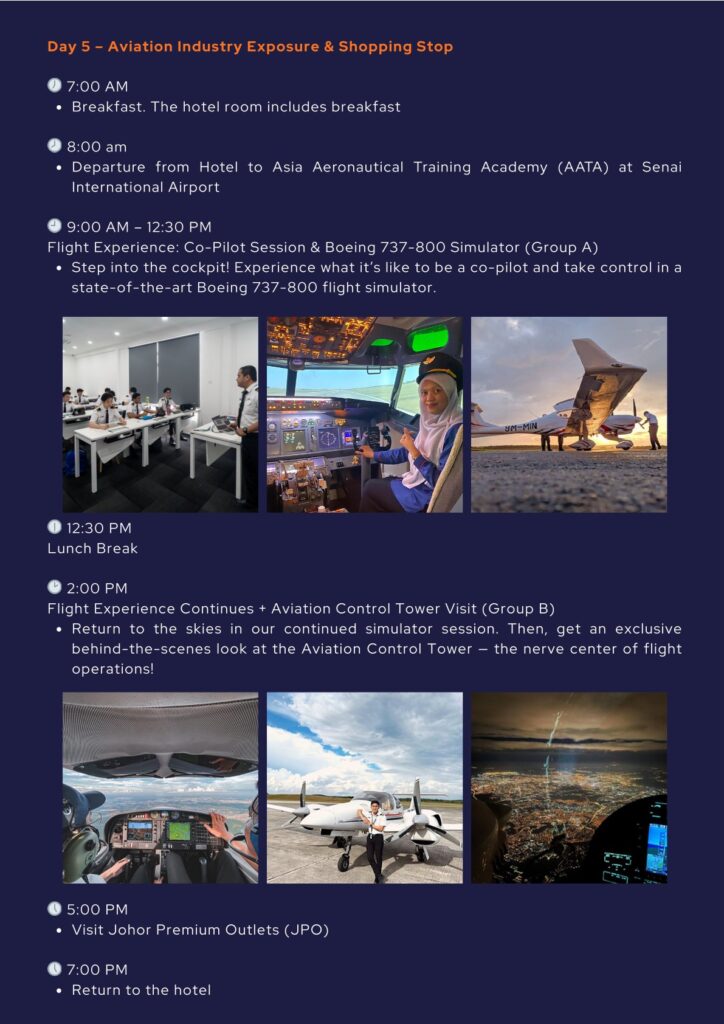 - Hari 5: Lawatan ATC, cabaran drone, lawatan tempat menarik
